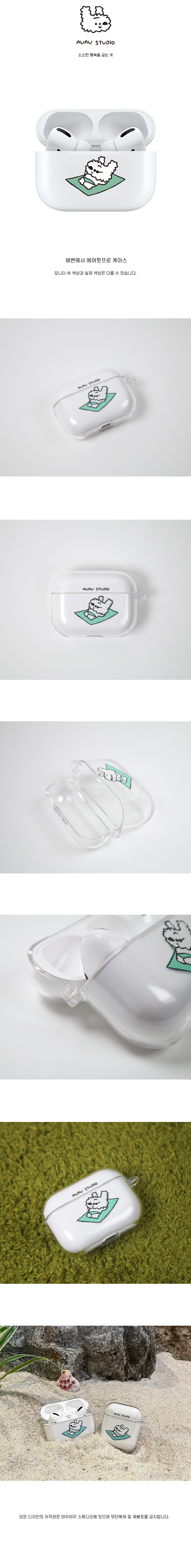 해변에서 투명 에어팟케이스